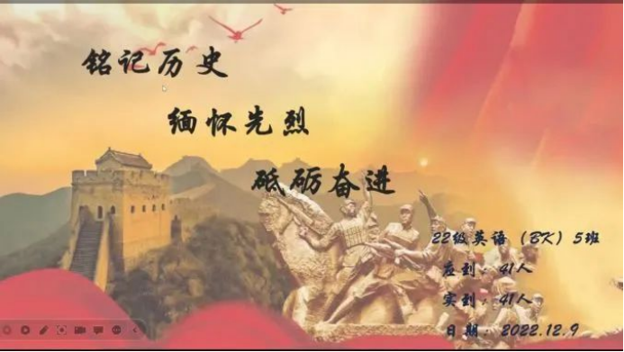 国家公祭日即将到来,为了进一步增强同学们的爱国情怀,12月9日晚上,beat365开展了以“铭记历史、缅怀先烈、砥砺奋进”为主题的线上主题团日活动。