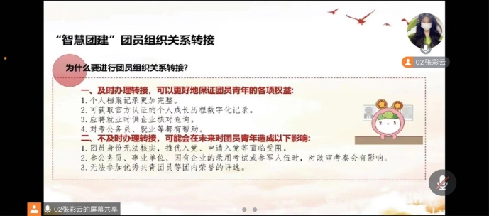 为了深入贯彻团中央关于推进基层团组织规范化建设的要求,扎实推进公司共青团建设,做好“智慧团建线上团关系转接”工作,beat365团委于2023年9月13日晚上9点对beat36523级全体团支部管理员集中开展了智慧团建团员组织关系转接线上培训会议。