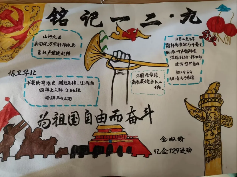 为有效引领同学们将爱国情感转化为实际行动,各班团支书组织同学们在团日活动前进行海报的制作以及活动后心得体会的撰写等,这一系列活动大大激发了同学们传承红色基因、发扬革命传统、践行时代使命的斗志,争做奋进新青年。