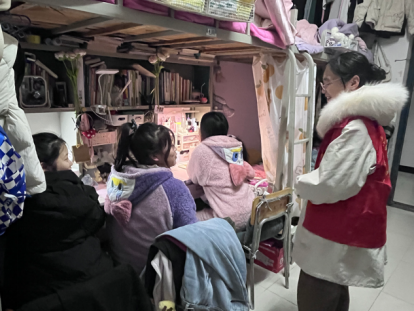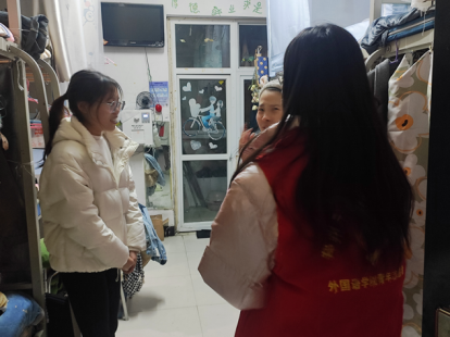 员工组织成员们到达宿舍后,分条理地向大家科普预防病毒感染的相关知识,提醒大家要保持宿舍卫生,勤开窗通风,确保室内空气流通,防止病毒、细菌的滋生和传播。除此之外,员工组织成员还与同学们探讨学习方法、交流谈心,提醒同学们临近期末要劳逸结合,关注身体健康和心理健康,并认真询问记录同学们反馈的有关学习、生活方面遇到的困难,及时上报,发挥桥梁作用。