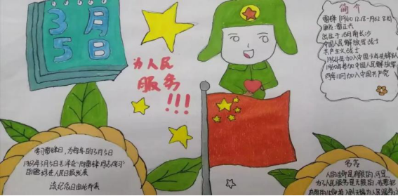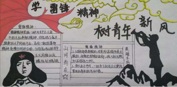 除此之外,同学们还通过绘画,制作手抄报等形式多样的活动,走近雷锋,寻找雷锋的足迹,践行雷锋精神。同时各班团支书也鼓励同学们学习雷锋精神,传承助人为乐、诚实守信、奉献爱心、艰苦朴实的中华传统美德,让雷锋精神在新时代绽放更加灿烂的光芒。