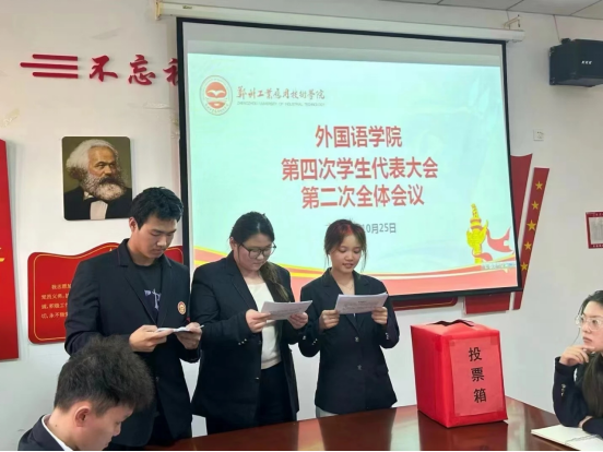 大会对新一届员工会主席团成员进行投票,经过严谨细致的票数清点与统计,计票人与监票人向全场公布了各候选人的得票情况并由工作人员宣布新一届主席团成员:王一宁、庞子怡、贾梦妍。