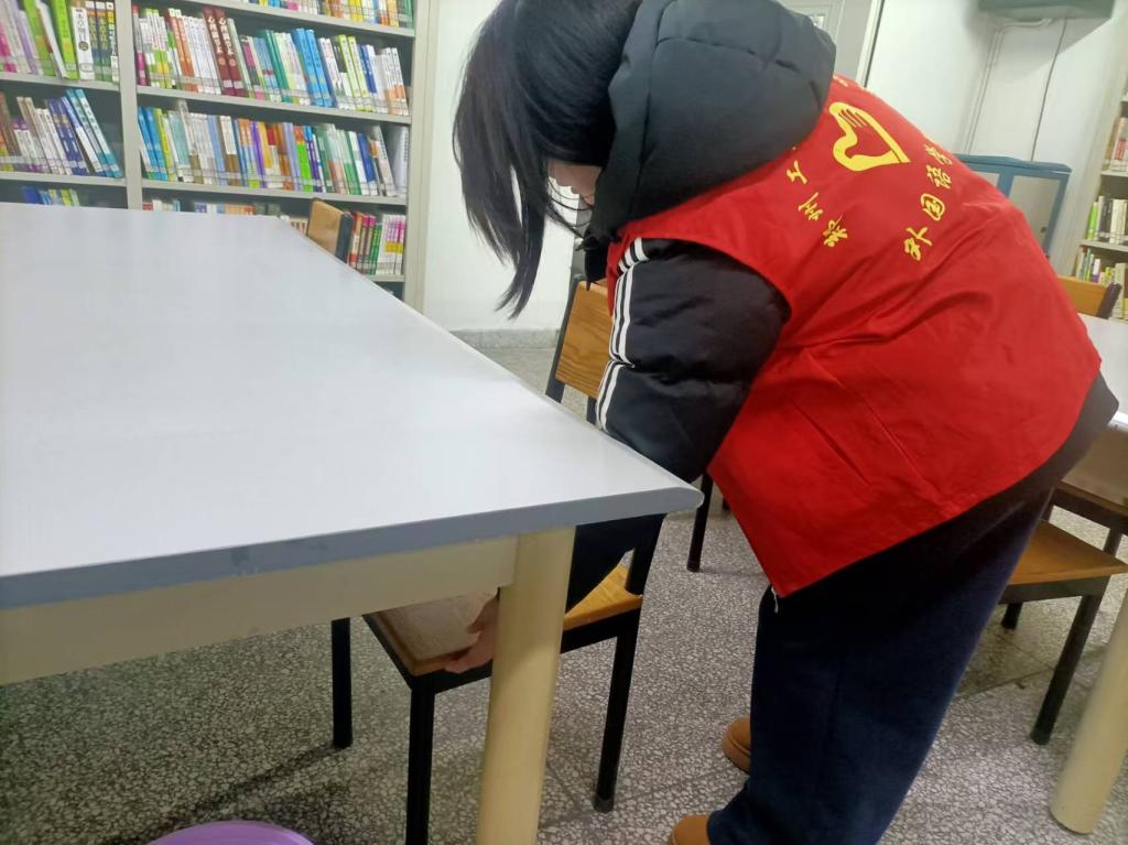 活动中,志愿者们以饱满的热情投入到图书馆的每一个角落,细心擦拭着书架与桌椅,拂去尘埃,使学习环境更加宜人。同时,她们还对图书馆的布局进行了细微的调整,以期在视觉与功能上都能给予读者更佳的体验。