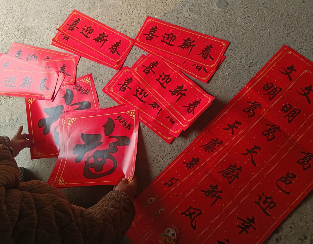 (文图/刘鑫)为深入弘扬中华民族丰富的传统文化,营造浓郁而祥和的节日气氛,公司积极倡导青年员工投身于社会实践之中。23级英语专业员工刘鑫于寒假期间踊跃参与了当地的“送春联,迎新春”社会实践活动,生动诠释了“墨香传情迎新春,实践暖心进社区”的主题精髓。
