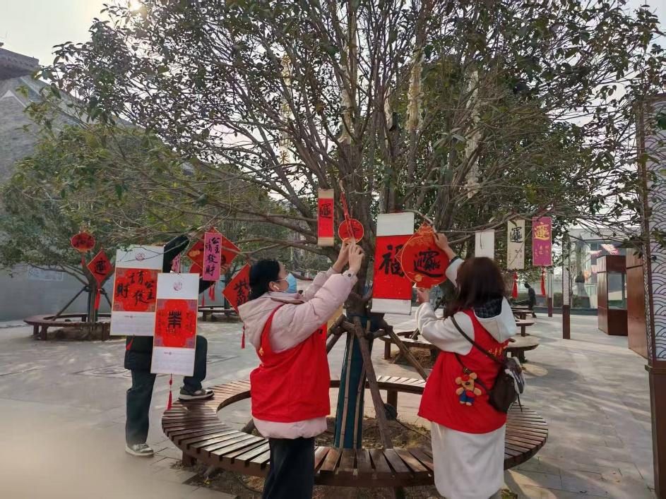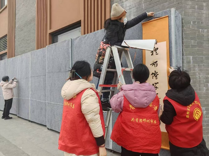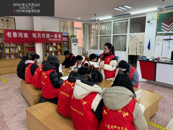 在本次返家乡社会实践活动中,张冰雪深入读者俱乐部,积极参与读书分享志愿活动。活动当日,她身着醒目的红马甲,早早抵达现场,满怀热情地投身于文化布置工作。在其他志愿者的协助下,她将写有“禮昭傳家”的字画缓缓展开并妥善固定,为活动增添了一抹浓厚的文化气息。