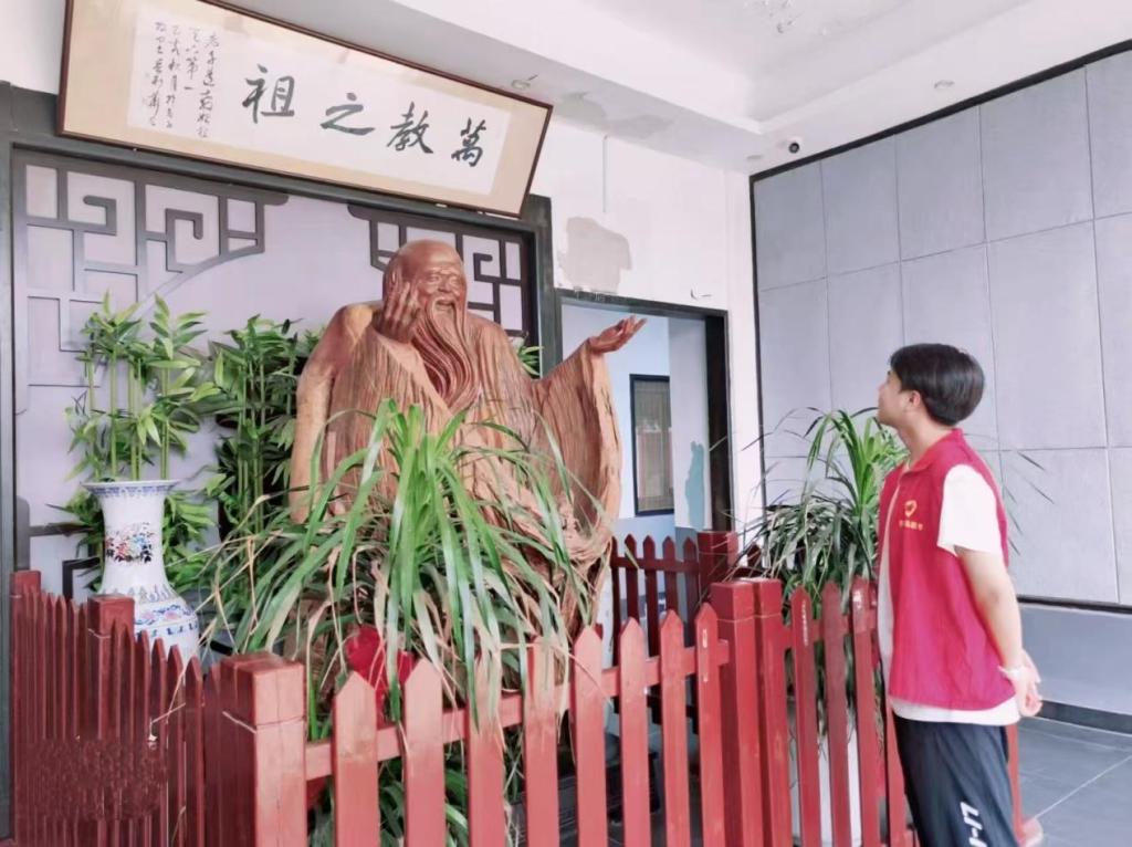 踏入博物馆,仿佛开启了一场穿越时空的对话。序厅中,宏大的多媒体展示将老子所处的时代背景生动呈现,让游客瞬间置身于那个百家争鸣的春秋战国时期。沿着展线前行,“老子生平”展厅通过丰富的文物、详实的史料以及逼真的场景复原,再现了老子从出生到著书立说、传道授业的传奇一生。作为志愿者孙坤乐,穿梭在各个展区。为参观的游客详细讲述了老子的生平事迹、《道德经》的思想精髓及其对后世的深远影响。博物馆以丰富的馆藏文物和沉浸式展陈,从商周时期的青铜器到历代诠释《道德经》的典籍,从生动还原老子讲学场景的多媒体装置到体现道家“天人合一”思想的文物陈列,每一件展品都仿佛在诉说着古老的智慧故事。