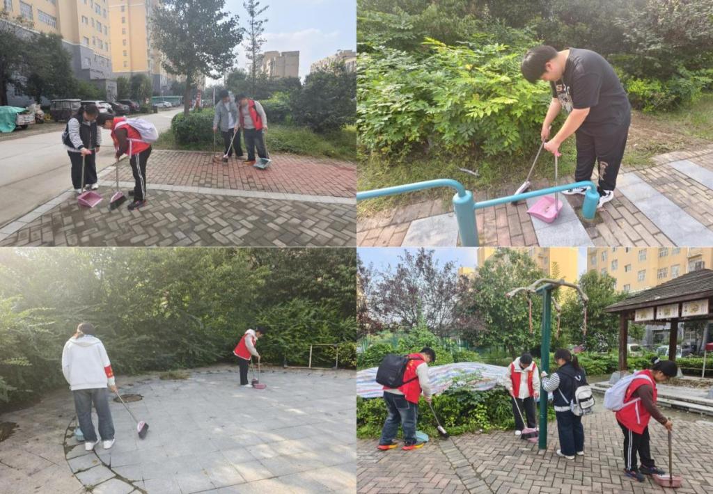 志愿者们抵达社区后,按分工有序做好活动准备。一部分志愿者手持工具,细致清理草地与地面垃圾,整治乱堆乱放、清扫枯枝落叶,并擦拭公共设施,提升公共区域环境水平。另一部分则向居民讲解环保重要性,结合生活小事传授垃圾分类、随手节约用电、植树造林等环保知识与具体措施,引导大家从身边事做起,共同为保护环境出力。