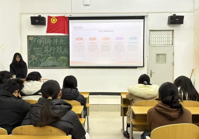 本次主题团日活动的开展,让同学们明白择业不仅要找准定位,深耕能力,更要树立目标,脚踏实地。未来同学们将会带着这份感悟,明辨择业方向,立足专业积累与沉淀,在青春赛道上坚定前行。