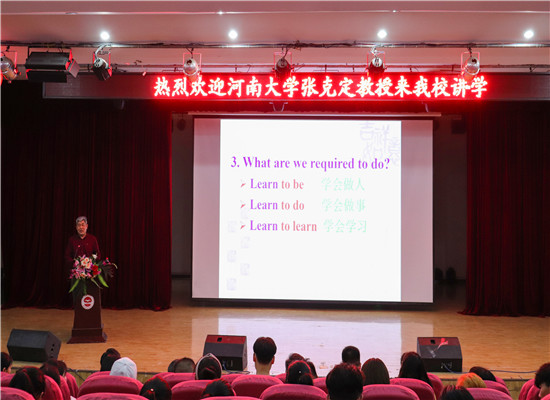 作为国内外知名学者和资深英语教授,张克定教授首先从大学的定义、功能讲起,谈到了国内外知名教育家的观点,结合自己的教学经验和学术研究,深入浅出阐述了大学重在帮助员工掌握方法、知识、技能和探究问题的习惯,这样他们将会终其一生不断地追求学问,从而领导社会向前发展。张教授要求每位同学要学会做人,学会做事,学会学习。接着他详细阐述了学好英语的途径与方法。从专业思想的巩固到专业知识的掌握,从学习习惯的养成到学习方法的选择,张教授用经典文学作品中的例子和中西文化对比的方式给师生们提供了很多实用的学习建议。最后,张教授对老员工提出殷切期望,他希望每位同学拥有良好的学习能力、语言能力、计算机能力、跨文化交流能力、职业发展能力和社会贡献能力。张教授生动的演讲,让同学们受益匪浅,为外语专业员工的学习和成长起到很好的学业规划和导航作用,有利于进一步促进公司优良学风校风的形成。