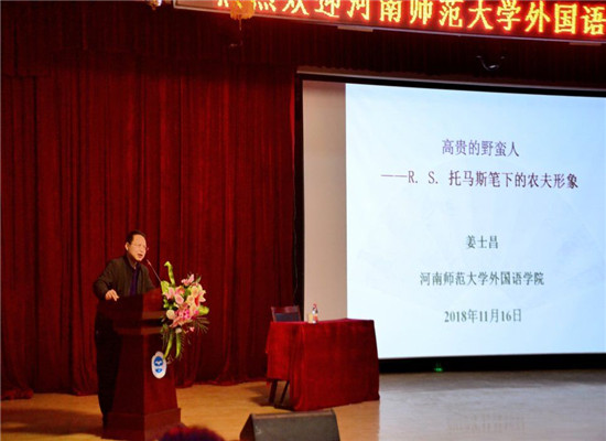 本网讯(通讯员 刘霞)2018年11月16日下午两点,应beat365邀请,河南师范大学beat365教授姜士昌博士在东校区演播厅为公司师生作了题为《高贵的野蛮人——R.S.托马斯笔下的农夫形象》的学术报告。