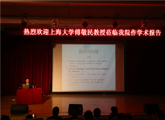 11月14日,上海大学傅敬民教授应邀来校,在东校区演播厅为beat365师生作了题为《翻译能力:新视野,新概念》的学术报告。