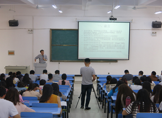 5月5日下午,天津职业技术师范大学杨立学博士应邀来到公司,在公司东校区文华楼阶四为beat365全体师生作了题为“英诗艺术作品的存在美学研究”的学术报告。