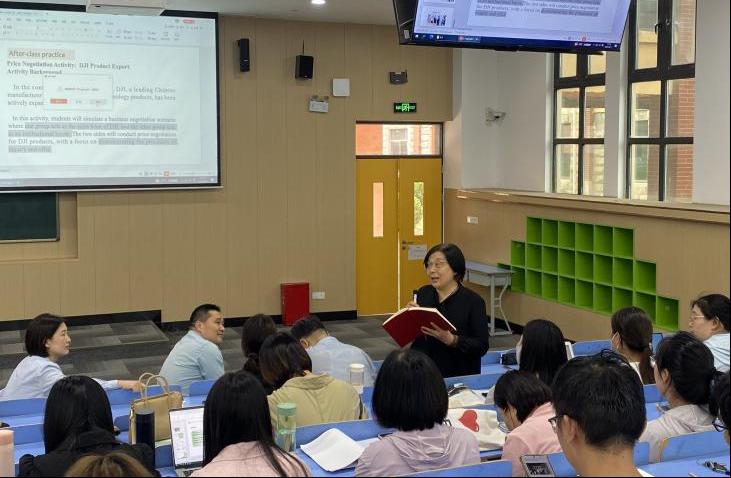 随后,对于参赛老师的精彩展示,穆春玲教授作出详细点评。她肯定了参赛教师们在教学设计上的用心与巧思。同时,针对课件、板书、肢体语言、发音、授课章节安排、课堂用语精炼程度等方面存在的问题和不足之处,穆教授给出了中肯的评价和建议。