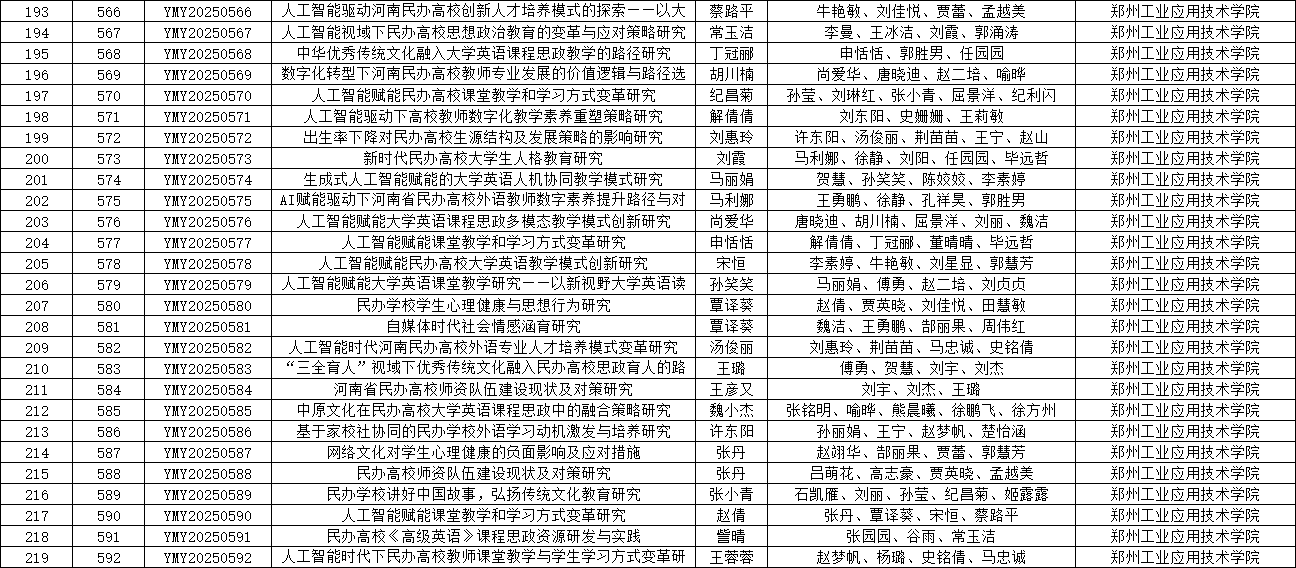 根据河南省民办教育研究会《关于2025年度河南民办教育调研课题立项结果的公示》的通知,现将立项名单予以公布,立项名单见附件。