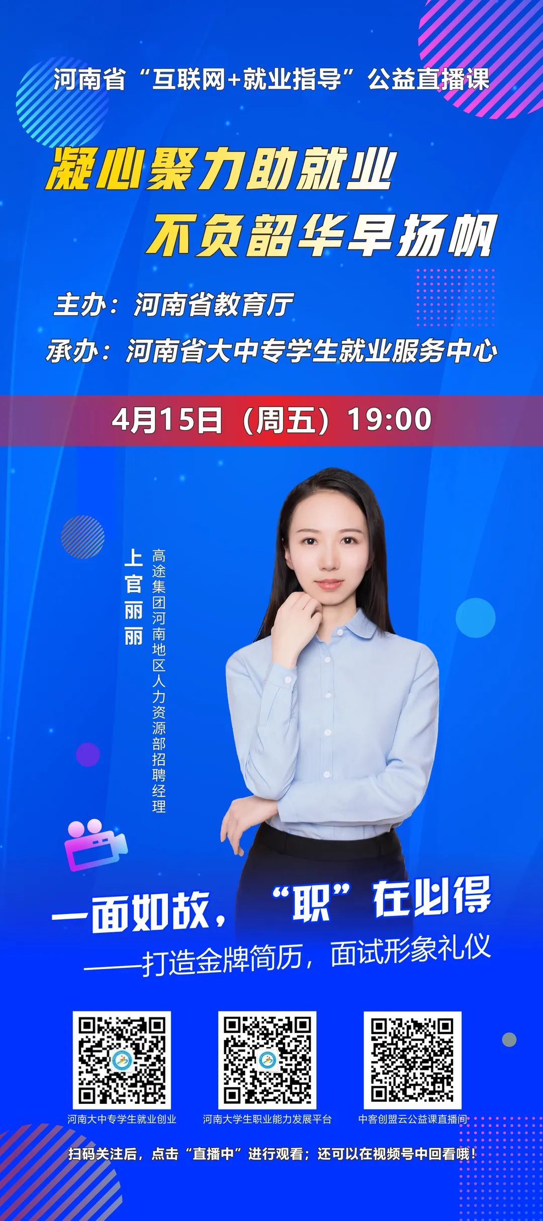 4月15日19:00,第三期全省高校毕业生“互联网+就业指导”公益直播课:一面如故,“职”在必得!