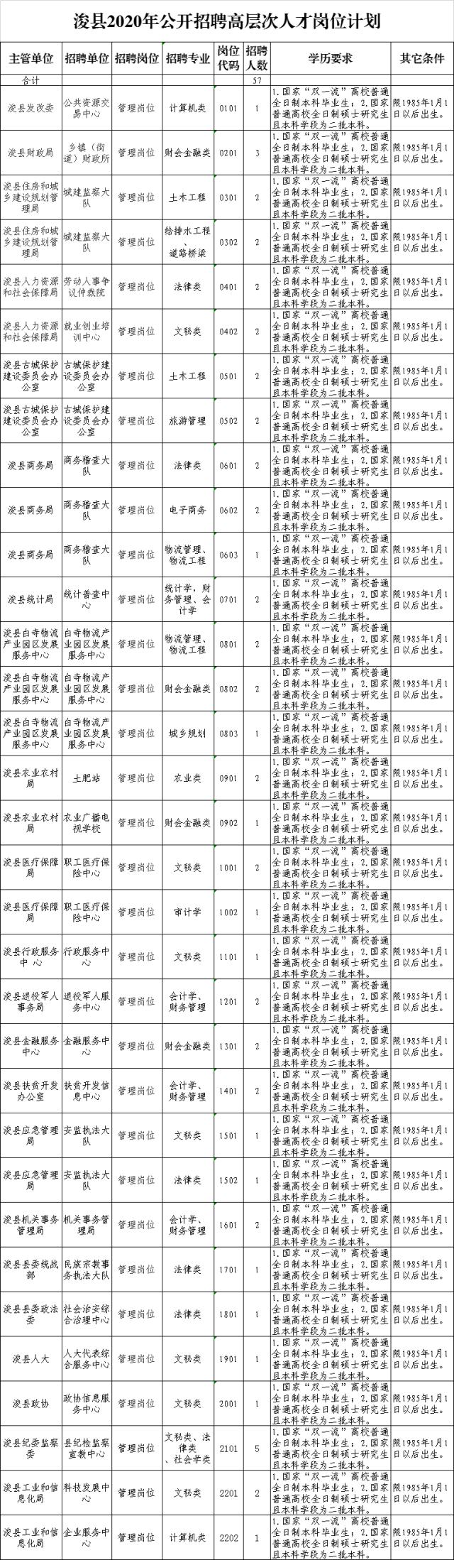 招聘岗位和条件见附件1《浚县2020年公开招聘高层次人才岗位计划表》。