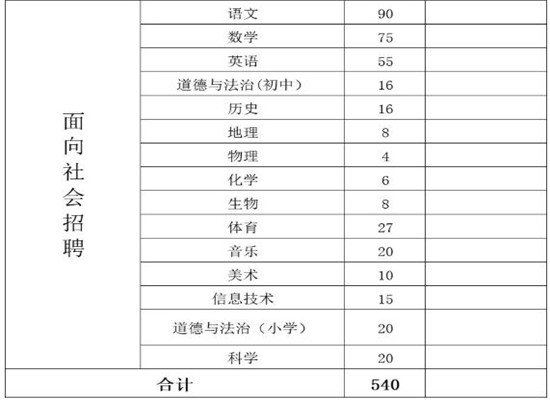 根据工作需要,经市政府研究,我市2020年计划招聘初中、小学教师540名。现就有关事项公告如下: