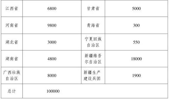 2019年全国计划招聘特岗教师10万名,各省(区、市)和新疆生产建设兵团的招聘名额见《2019年中央特岗计划各省份设岗名额分配表》。其中,河南9800名。