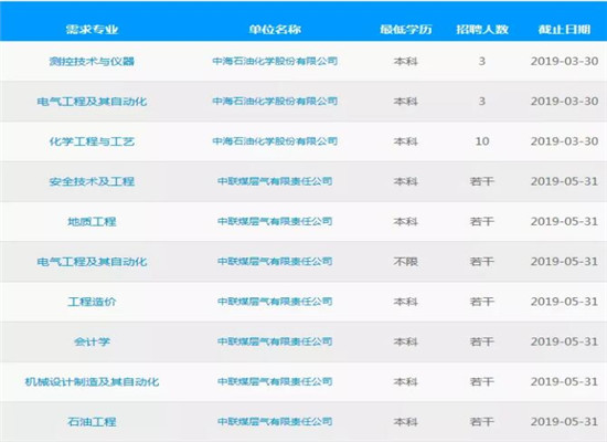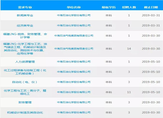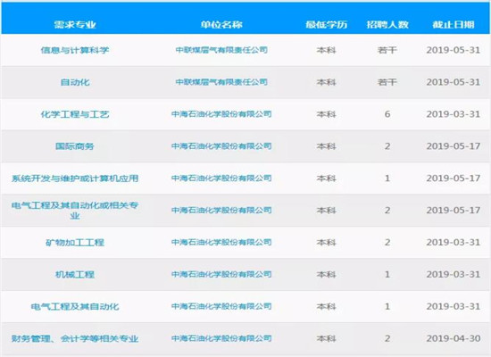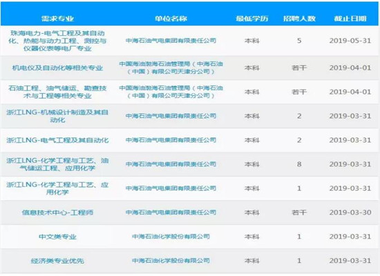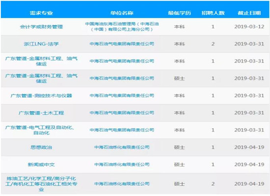 根据“十三五”发展战略对人才的需求和公司人才滚动规划,中国海油石油总公司拟面向海内外各院校招聘2019届优秀应届毕业生。