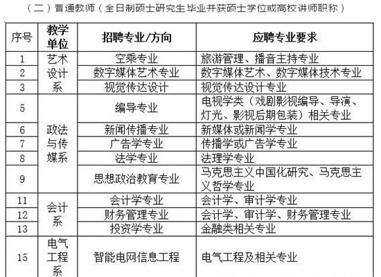 2.实验教师要求全日制硕士研究生毕业并获得硕士学位或有企业、行业工作经验的中级及以上专业技术职称,所学专业与所在工作岗位专业要求相符。