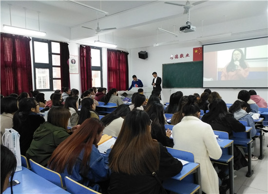 招聘会由郑州德普施英语培训中心王董事长宣讲。王董事长首先通过一个小短片让大家感受其企业文化。然后从教学环境、品牌教材、团队力量和教学特色做了一一讲解,特别介绍了培训中心独有的十大社会实践活动。在招聘会上,在郑州德普施英语培训中心已任职五年的公司11级毕业生也向同学们谈了自身的工作经历和感想。