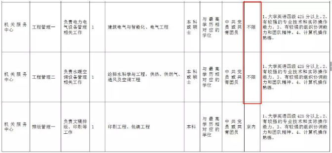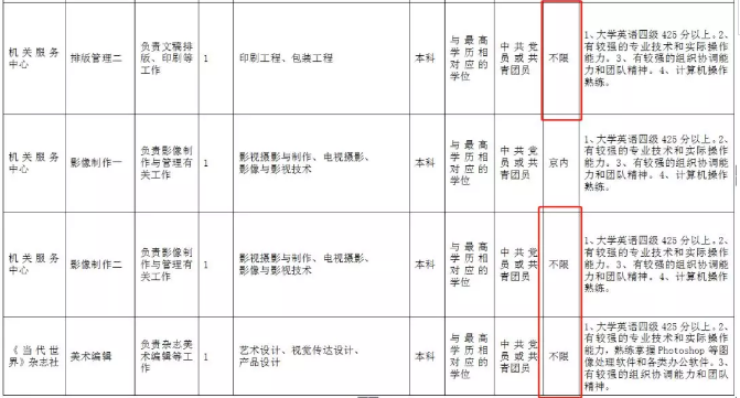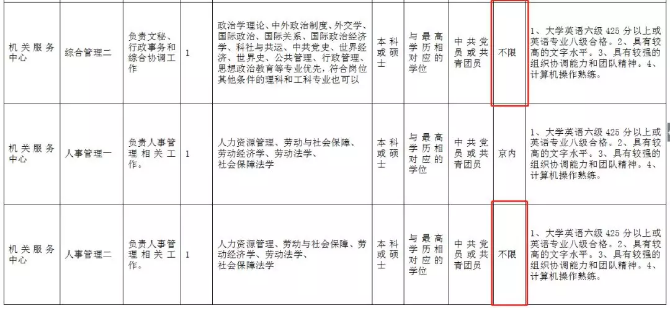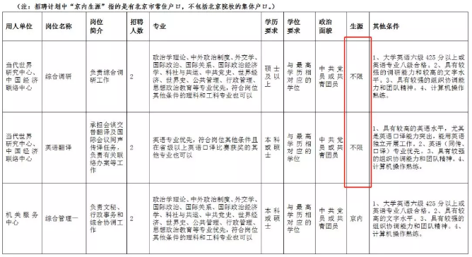 招聘计划中“生源”一栏,“京内”指的是有北京市常住户口,不包括北京院校的集体户口;“不限”指的是京内、京外生源皆可。