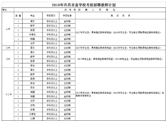 3、许昌市教育局网(www.xcjy.gov.cn)、许昌市人力资源和社会保障局网(www.haxc.hxss.gov.cn)是本次招聘的专用网站。
