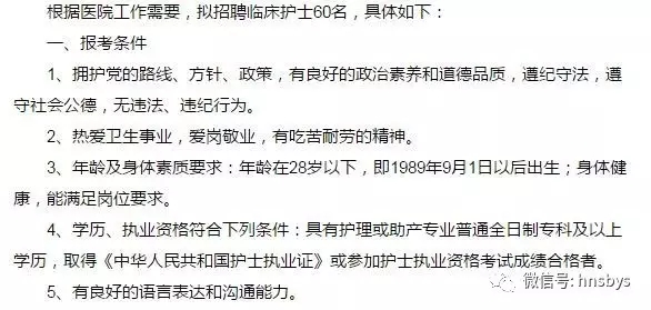 3、报名所需材料:报名表1份,毕业证、护士执业资格证或护士执业资格考试成绩合格证明、身份证等相关证件的原件及复印件各1份,本人近期一寸彩色正面免冠照片1张。报名费按30元收取。报名表可从医院网站下载。