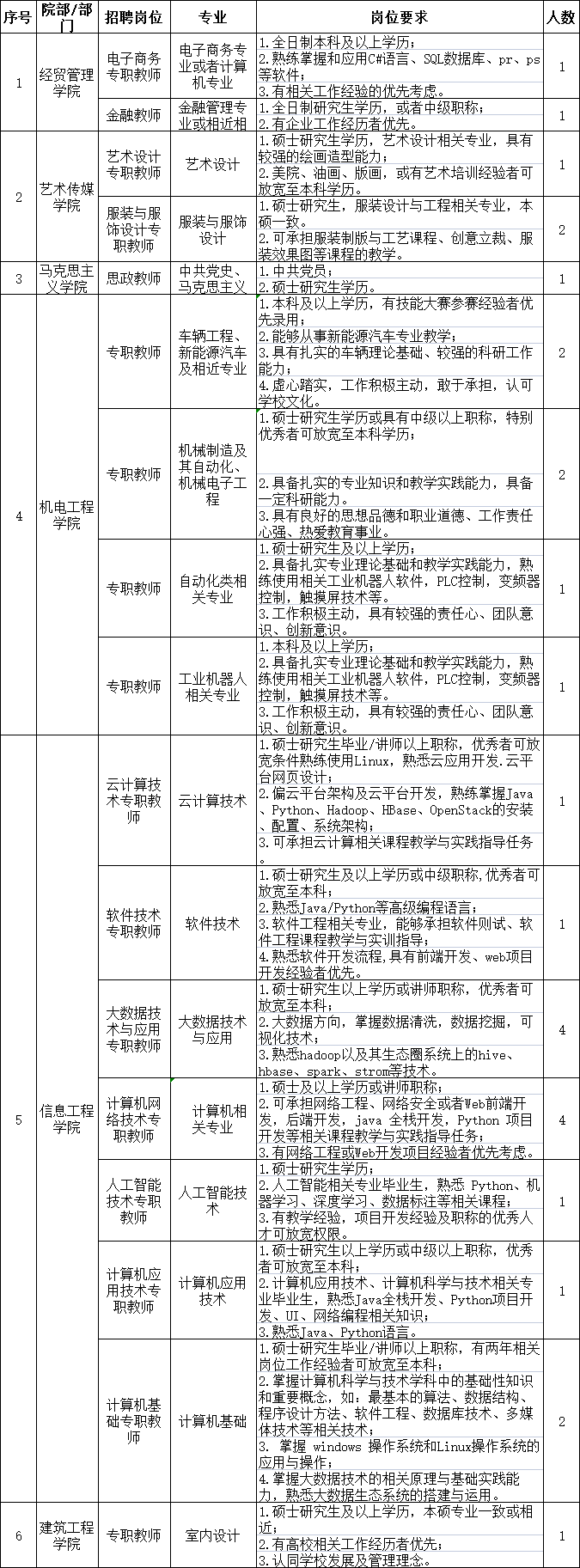郑州理工职业公司因事业发展需要面向社会诚聘教师,岗位招聘基本条件如下: