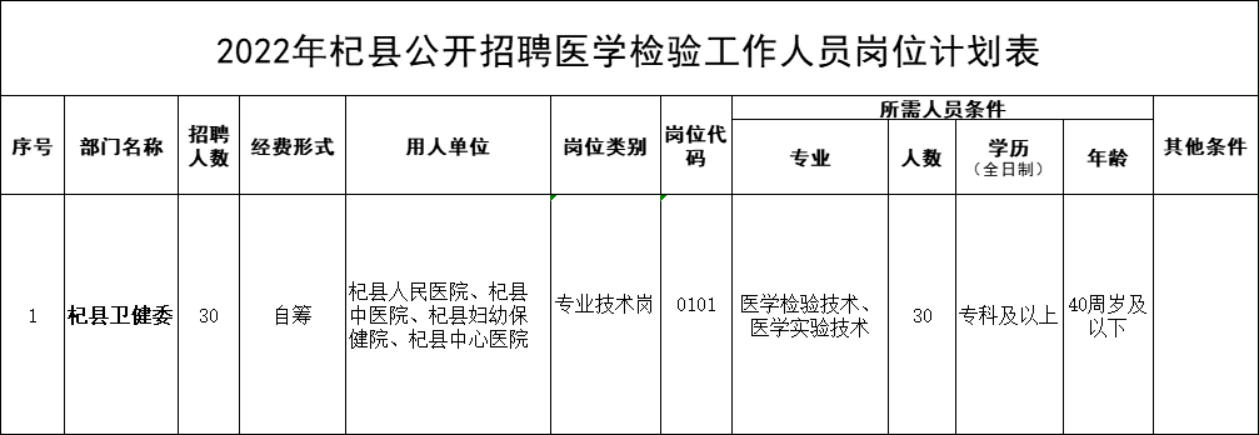 附件1:2022年杞县公开招聘医学检验工作人员岗位计划表