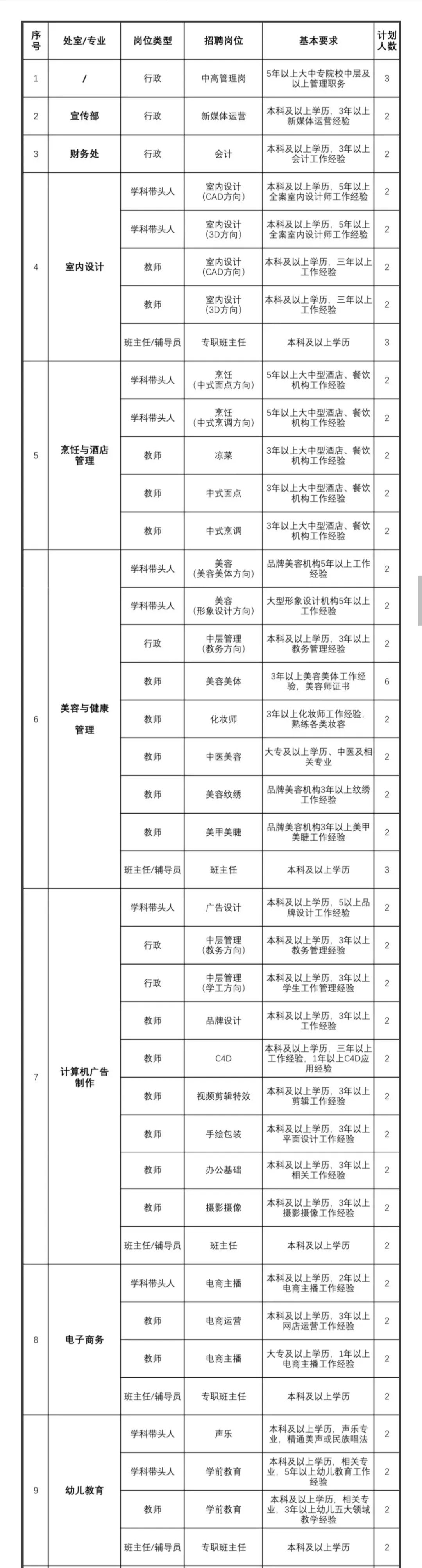为满足公司快速发展需要,加强各专业团队队伍建设,现面向社会招聘专业技能人才及班主任。具体招聘岗位如下: