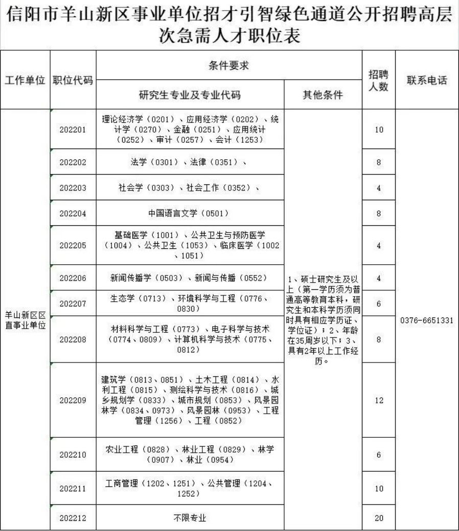 4、符合招聘岗位要求,具体详见《信阳市羊山新区招才引智绿色通道公开招聘高层次急需人才职位表》(附件1)。学历证、学位证要求为2022年12月31日前取得,年龄要求35周岁以下为1986年10月以后出生,工作经历计算截止时间为2022年10月31日,本公告以上、以下均含本级,下同。