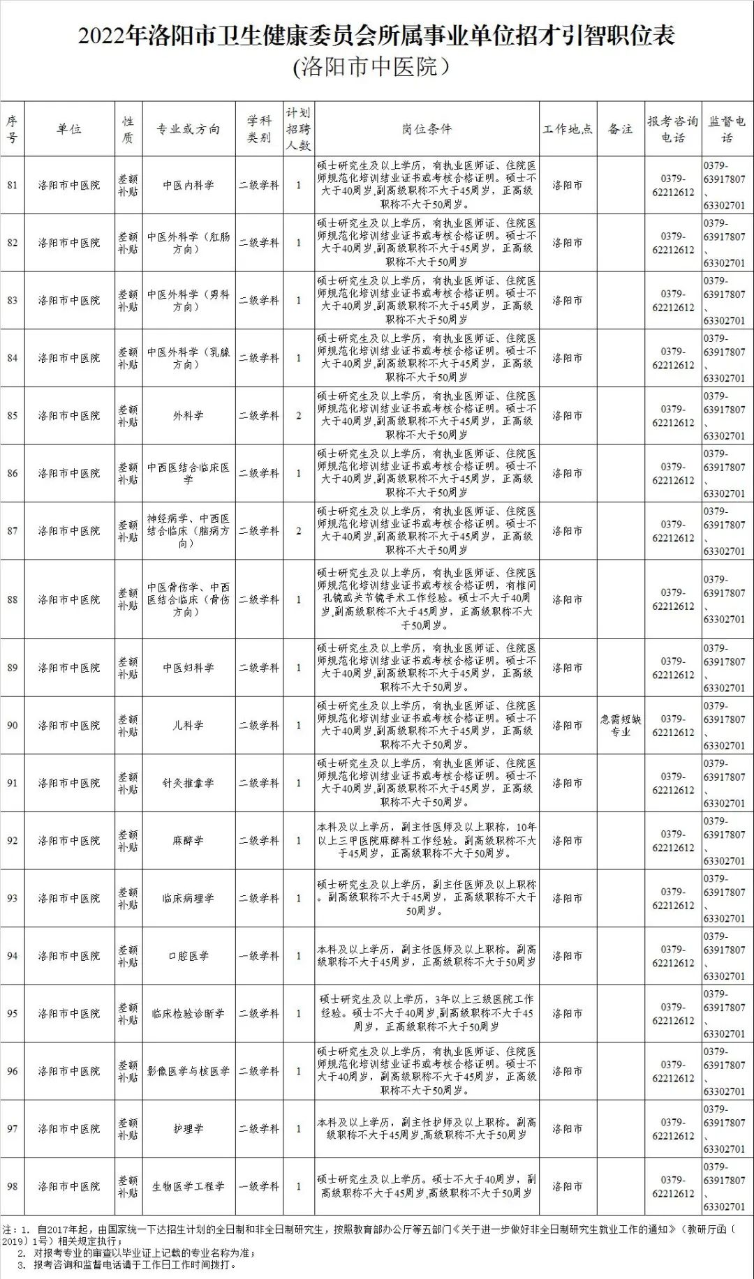 详见《2022年洛阳市中医院招才引智职位表》(附件1)。