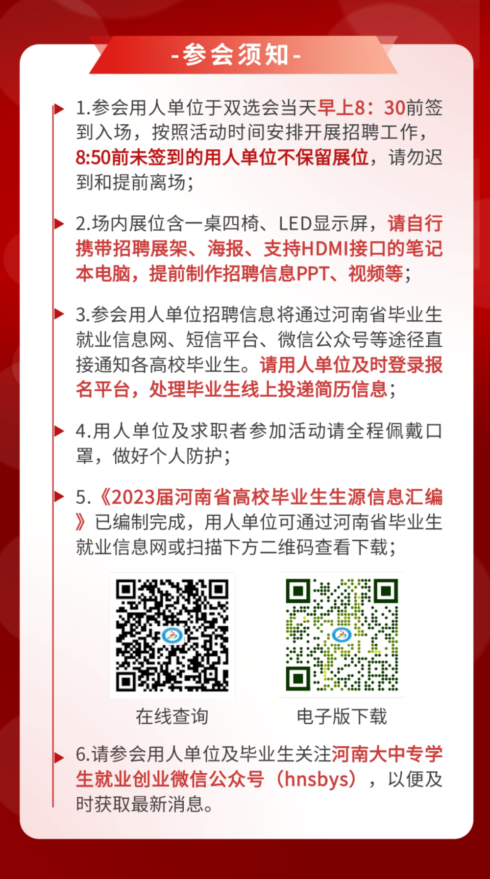 为积极拓宽毕业生和用人单位沟通渠道,搭建供需交流平台,推动高校毕业生高质量充分就业,省教育厅于5月26日(周五)在河南省老员工就业创业综合服务基地举办2023届高校毕业生就业促进周(河南)专场双选会,欢迎应往届高校毕业生参会。