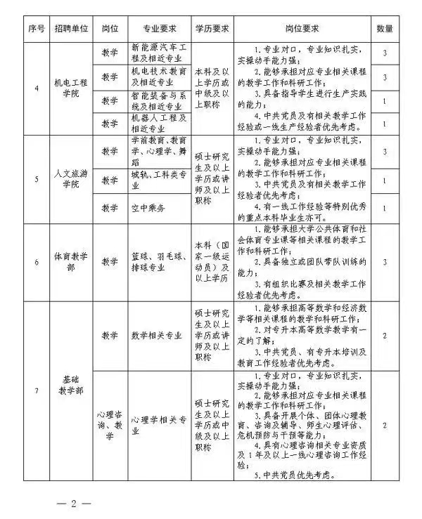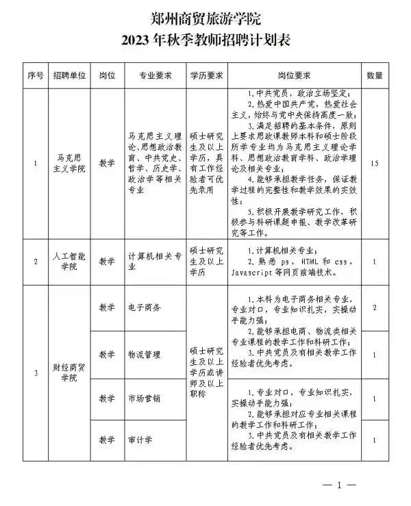 招聘岗位及相关要求详见郑州商贸旅游职业公司2023年秋季人教师公开招聘计划表(详见附件)。