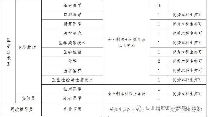 (四)应聘教师岗位者,要求本硕专业一致或相近;中、青年教师年龄一般不超过35周岁;具有高校教师系列及相关行业、企业工作经验中级职称者或博士研究生学历的年龄可适当放宽并优先考虑;具有副高及以上职称年龄可放宽至65周岁。