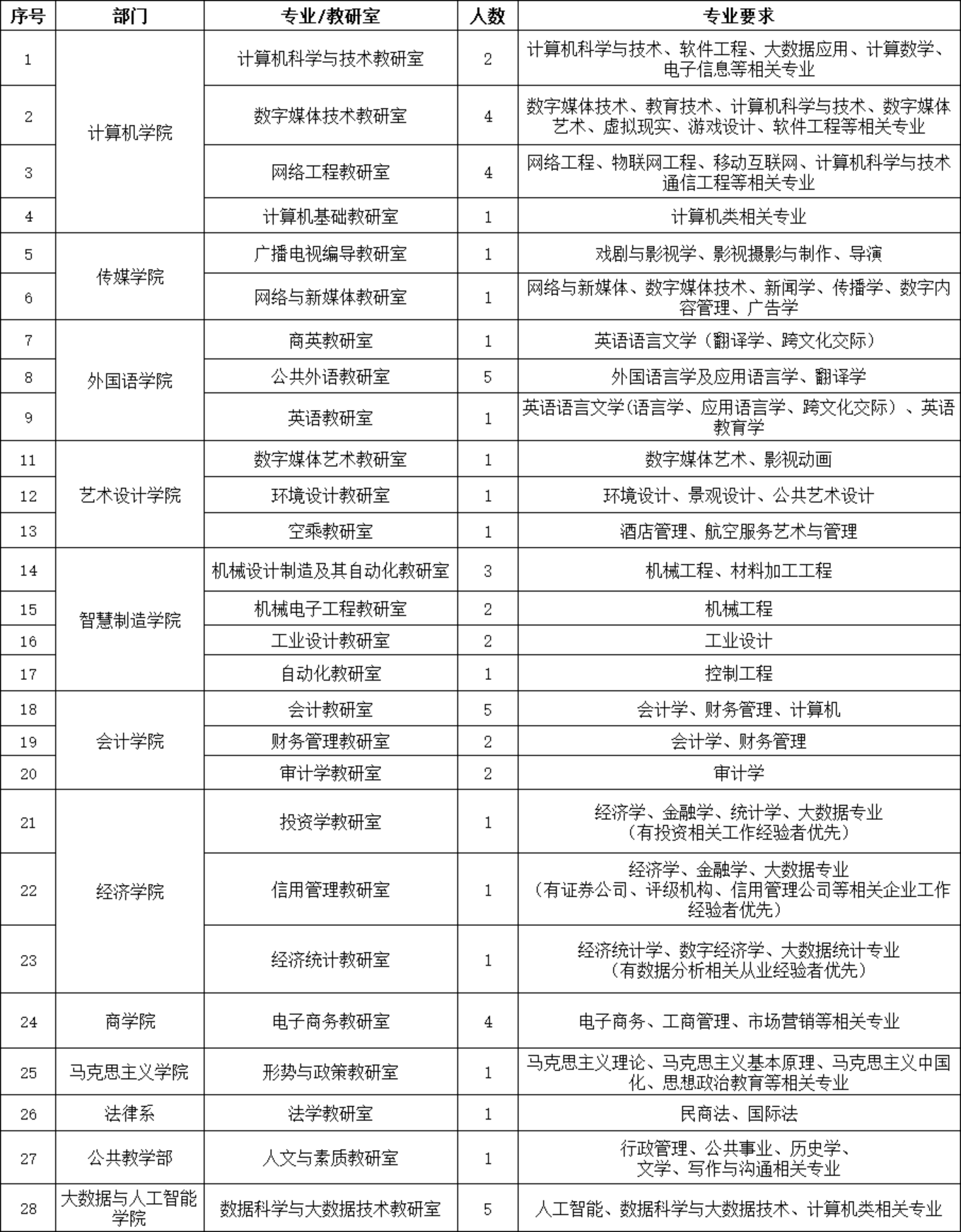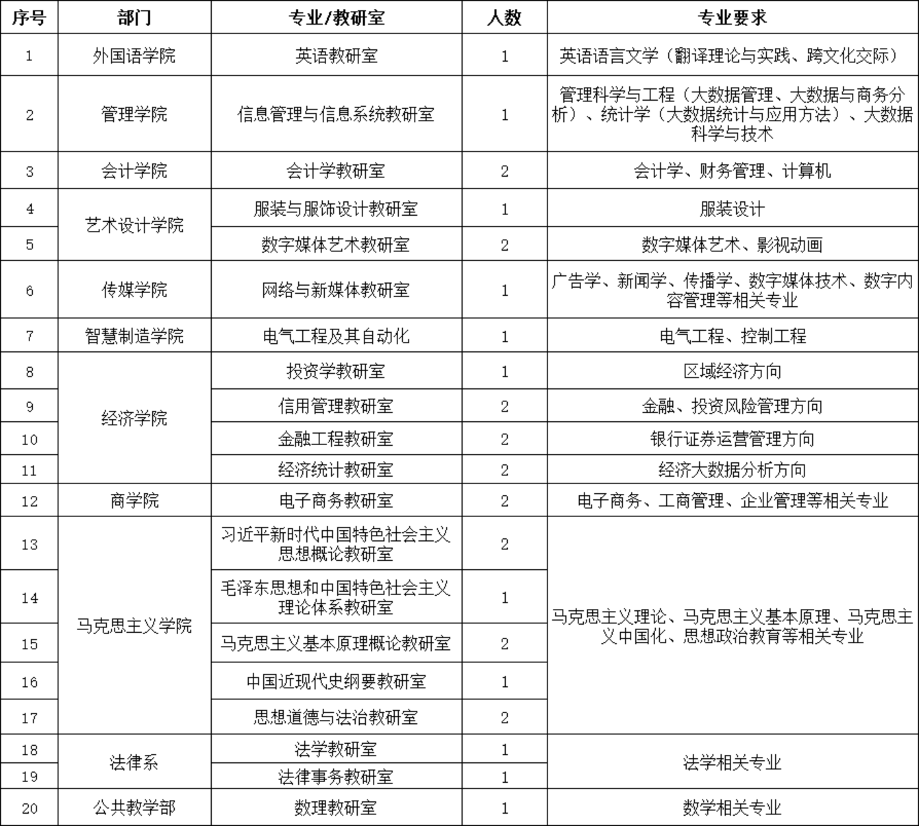 2.一般教师要求硕士研究生毕业并获得硕士学位,本硕专业相同或相近;一直在高校从事教学工作并取得讲师任职资格可适当放宽;