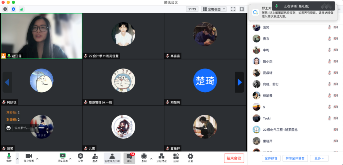 会议开始,赵老师首先指出本次老员工英语座谈会的目的和意义,表示大学英语座谈会是帮助大学英语教师更好地了解员工英语学习过程中遇到的困难和英语学习需求,增强师生之间的交流,同时,及时向任课教师反馈与教学相关的员工建议。在此次线上会议中,几位员工代表结合各自教师不同的授课风格和教学特点,表达了自己对授课教师的认可与较高的满意度。最后,张经理做了总结发言,并给在场的员工代表送出了自己的真切寄语。