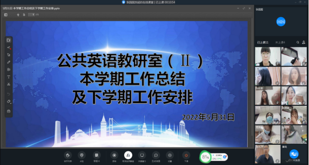 (文/熊晨曦)为更好总结本学期公共英语教研室(II)的教研教学工作,以期为下学期各项工作的开展和实施提供全方面指导,公共英语教研室(II)于5月31日下午15:00-16:00召开题为“本学期工作总结及下学期工作安排”的教研会议。本次会议由教研室主任张园园老师主持,教研室全体教师参加。