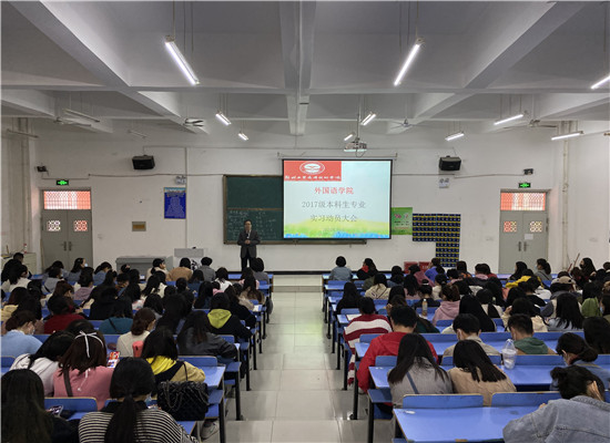 (文/傅勇)2020年10月16日下午4点,beat365在文华阶四教室召开2017级本科生实习动员大会。beat365经理胡天赋教授、副经理张凤娟副教授、副经理李莹、专业英语教研室主任许东阳副教授、校外实习负责人傅勇老师及全体实习指导老师参加了大会。会议由实践教学中心主任常玉洁副教授主持。