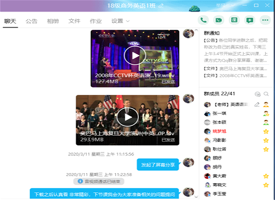 之后,授课老师为大家推荐相关实训模块的学习资料如音频、视频等,同学们看得津津有味,并自发在群里进行讨论。