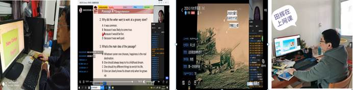 在我们的大学英语教学团队中有白发苍苍的50后老教授,也有90后锐意青年,有从教三四十年的老教师,也有刚入职的新手。面对疫情,老师们群策群力,共同分享好的资源,每个人都把网课当成疫情时期的一次“逆行”,各种平台的摸索,试用,和员工联系组建班级群等等。平台使用有QQ、微信、智慧树、雨课堂、钉钉、腾讯课堂、超星学习通;教学资源有选择各大平台已有资源的,也有自建资源的;授课形式有直播、有点播、有录播、有混合式;作业形式听、说、读、写、画、唱。真可谓百家争鸣,百花齐放,看我七十二变。