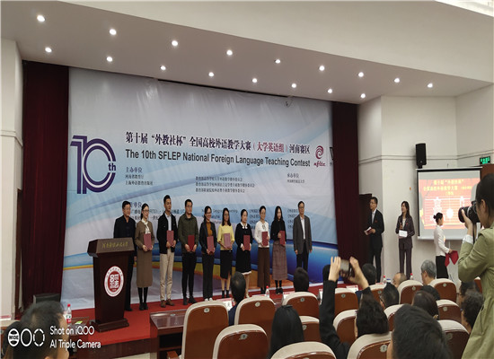 本网讯(通讯员 张园园)第十届“外教社杯”全国高校外语教学大赛大学英语组河南省赛于2019年10月18日-20日在河南财经政法大学举办,公司beat365教师张园园老师和郭雯雯老师分别获得综合课组和视听说课组三等奖。大赛力求在保持英语课堂教学核心内涵的基础上,不断优化比赛形式和评分标准,鼓励创新,以更好地适应高等教育发展新形势,助力高水平本科教育,助力高校打造“金课”,从而进一步深化大学外语教学改革。