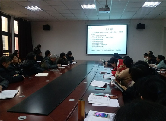 交流会上,参加外出培训的副教授杨静、讲师马丽娟和惠钦源三位老师兴致勃勃,以图文并茂的方式分别汇报了各自外出学习的情况,并分享了他们的心得体会。分享会上,杨静老师汇报了在省委党校参加2018年哲学社会科学教学科研骨干研修班的基本情况和学习体会;马丽娟老师介绍了参加第七届中美诗歌诗学国际学术研讨会的情况和学习过程中所收获的资源;惠钦源老师从专家主旨报告、分组讨论等方面,以详实和生动有趣的图片形式,汇报了他在上海参加第十三届全国语言与符号学研讨会的感想与习得。三位老师的汇报内容丰富深刻,富有启发意义。