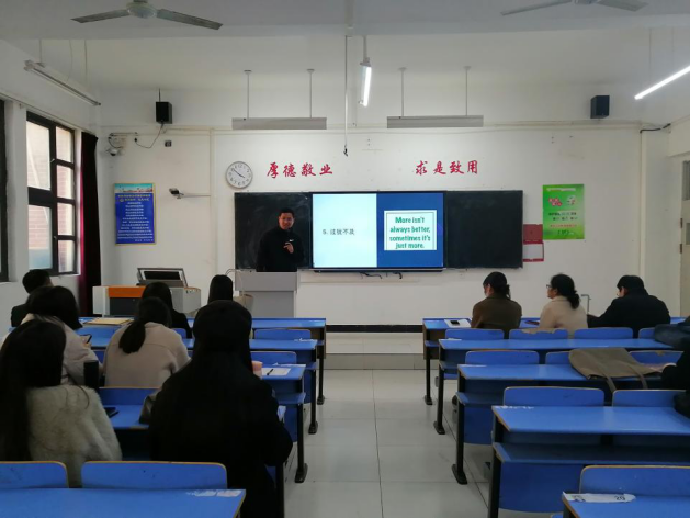 会议伊始,第一教学团队负责人徐方州老师针对大学英语(IV)第一单元进行了集体备课反思与创新点分享,主要包括五个方面。第一,充分发挥员工的创造力和主动性。徐老师向大家展示了员工第一单元的作业——画一幅鱼的图片并标注各个部位相应的英语单词,以此巩固该单元的相关单词并增加了作业的趣味性。第二,选择性地要求员工进行课堂展示。课堂展示有助于丰富课堂教学形式,调动员工的主动性,但并不一定适合每个员工,因此,教师在布置课堂展示时要充分考虑员工的基础与特长,给每个员工提供适合个人能力的舞台。第三,针对员工的表现给出及时、有效的反馈。及时的反馈能够让员工根据反馈内容快速做出调整。有效的反馈则要求老师给出的反馈不能千篇一律,要针对员工的表现,使用具体的语言,让员工感受到反馈的真实性,给员工带来努力进步的动力。第四,进行适当的课堂管理。教师在课堂上要做到宽严相济,在原则问题上保持严肃的态度,在无关紧要的细节上给员工一些自由的空间,让员工在严肃又活泼的课堂环境中汲取知识。第五,建议教师们要牢记“More isn’t always better, sometimes it’s just more.”。大学英语(全新版)词汇量较大,教师们在授课过程中要根据员工的基础和接受能力有所舍弃、有所侧重,主讲重点词汇。