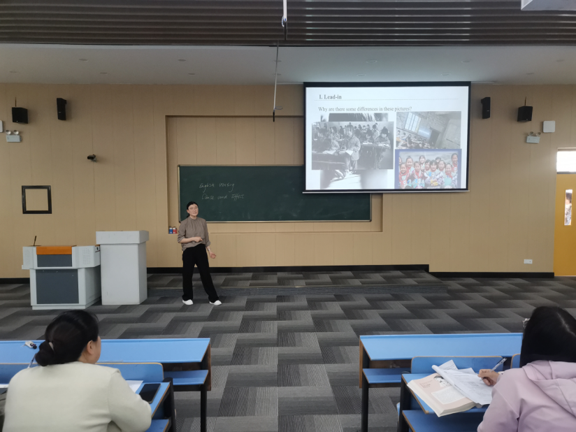 (文/荆苗苗)2024年4月23日下午,专业英语教研室在文华楼2-203办公室召开教研活动,主题为“观摩课、听评课”,由王蓉蓉老师主讲,专业英语教研室全体成员参加。王蓉蓉老师的讲课主题是English Writing(Cause and Effect)。首先,王老师将中国脱贫之路作为自己的导入,利用图片以及图表来说明中国成功脱贫,并讨论了中国脱贫所采取的相关措施以及达到效果。其次,王老师分析了在英语写作中cause和effect的相关定义和不同的形式,并进行举例说明。最后,王老师将本课的文章结构做了详细分析,使员工对本节知识有了更深层次的认识。通过本节课的学习,员工们对中国的脱贫之路有了更加全面的了解,并且掌握了更多的写作技巧。