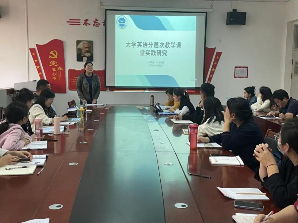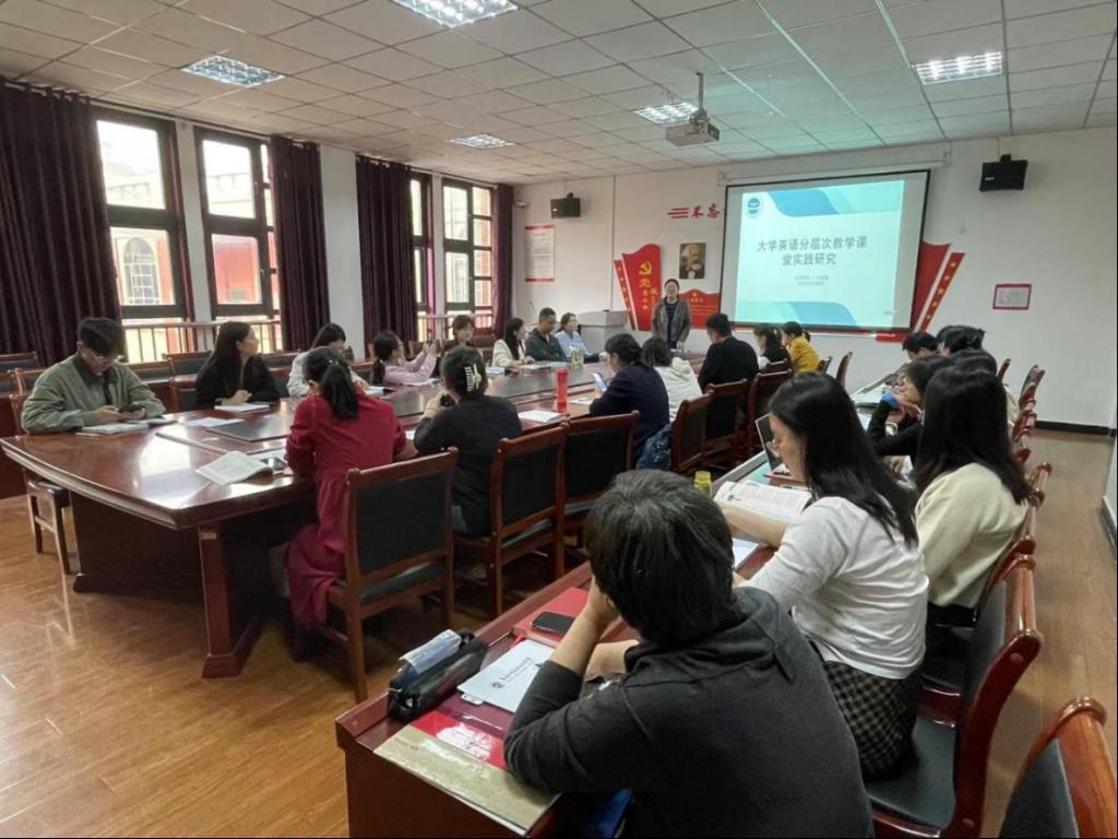 徐静老师分享结束后,参会教师结合自身实际教学,围绕“大学英语分层次教学课堂实践研究”这一主题进行讨论,对两种分层教学进行反思和优化。本次教研会使教师们认识到,大学英语分层级教学的实施对提高员工的英语综合能力和课堂教学质量具有重要的促进作用,教师要立足以人为本,根据员工的实际学习能力设计教学计划,在分层次教学中促进个性发展,实现人性化教育管理。