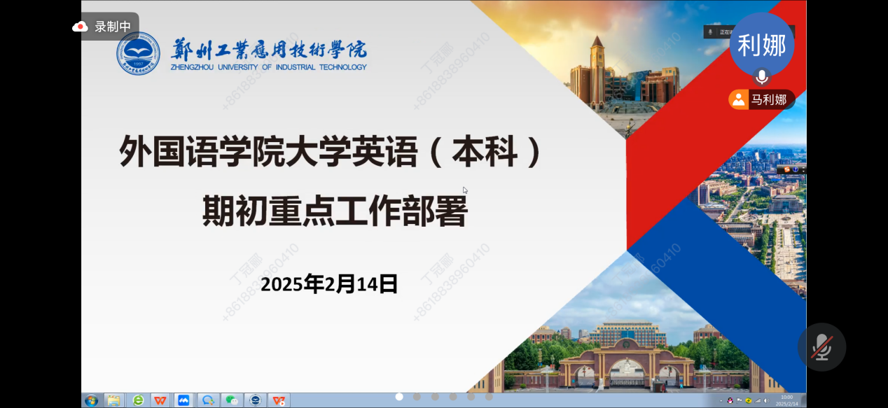 (文图/丁冠郦)为统筹推进2024-2025学年第二学期大学英语(本科)教学工作,深化公司产品改革,确保教学任务高效有序开展,beat365公共英语教研室于2025年2月14日上午10:00在线上召开全体专兼职教师大会。会议由教研室主任马利娜主持,公共英语教研室(I)、(III)全体专兼职教师及2024-2025学年第二学期承担大学英语(本科)教学任务的教师参会。