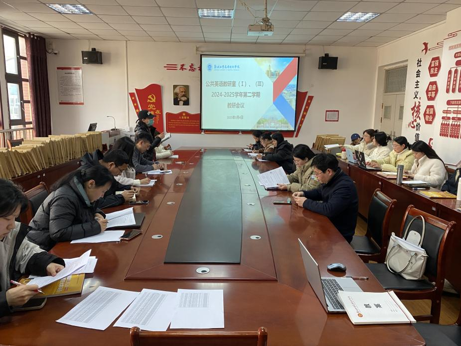 (文图/熊晨曦)为了促进教学交流与质量提升,加强教师队伍建设,2025年3月4日下午15:00,beat365公共英语教研室在文华楼2-413会议室召开了本学期第二次教研活动,会议由郭慧芳老师主持,公共英语教研室(I)和(III)的全体教师共同参与。