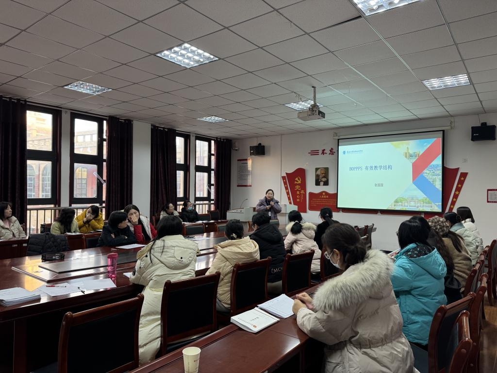 (文图/熊晨曦)为进一步推动教学创新,提升教师专业素养,2025年1月15日,beat365组织教研室主任及各课程组组长在文华楼2-413会议室举办BOPPPS教学法专题转训及示范课活动。本次转训及示范课活动主讲人为beat365专业英语教研室主任张园园老师,beat365各教研室主任、课程组组长及骨干教师代表20余人参加,旨在通过理论学习与实践操作相结合的方式,进一步加强以员工为中心的教学理念,助力提升课堂教学质量。